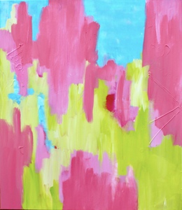 2011Het schilderij is gemaakt op een oersterke, canvas, kickboksmat. De kleuren zijn aqua, aquamarijn, crimson, turkoise, zalm, violet, paars, roze, blauw en groen, rood en wit. Het schilderij is gemaakt op de kickboksmat van Mejiro Gym. Wereld kickboks kampioenen K-1 hebben er dagelijks op getraind.